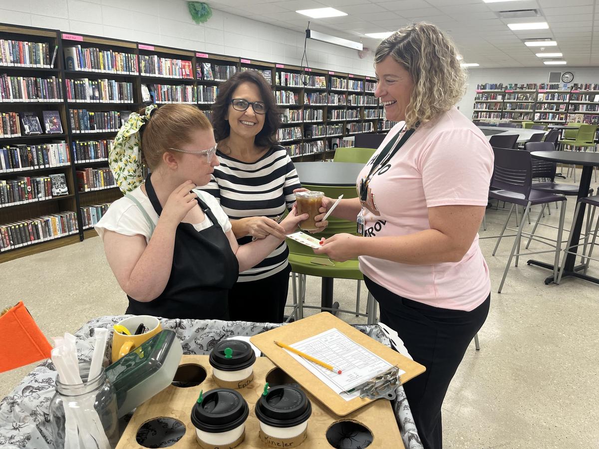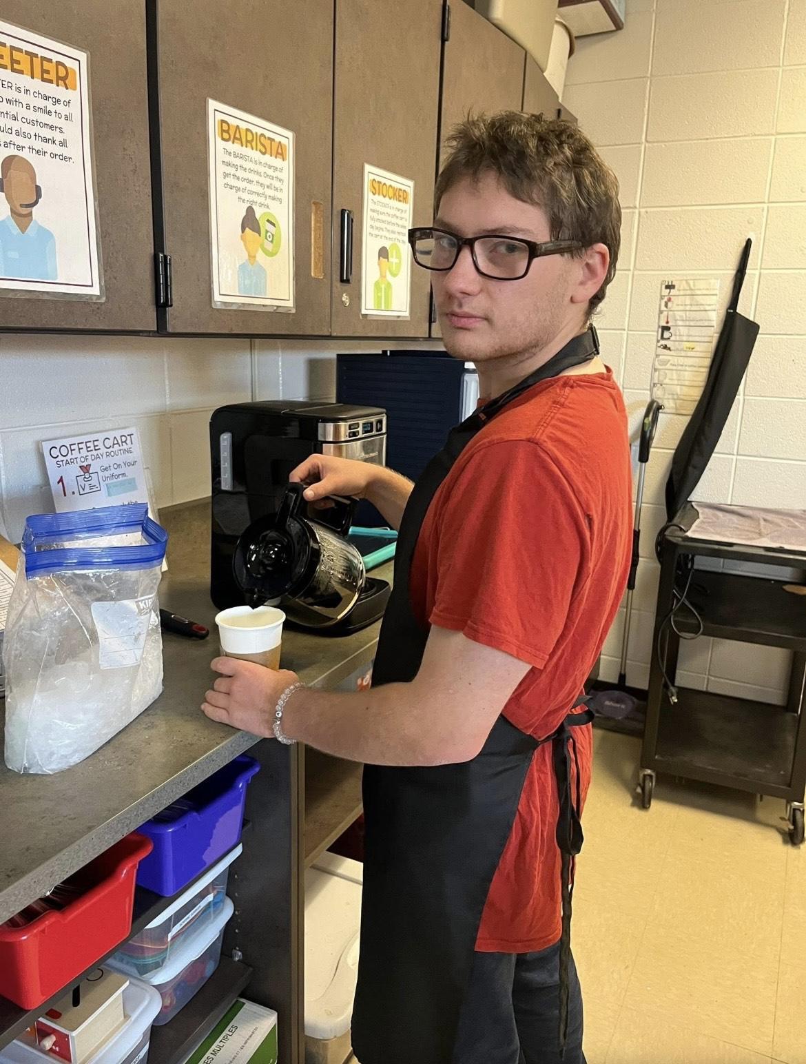 Creative Blends is operated entirely by students in Sarah Bell’s Transitions Course, with guidance from their instructor and a dedicated team of paraprofessionals. Each student takes on an important role—whether it’s managing online orders, customizing coffee sleeves, brewing drinks, handling deliveries, or processing payments through cash or prepaid punch cards.