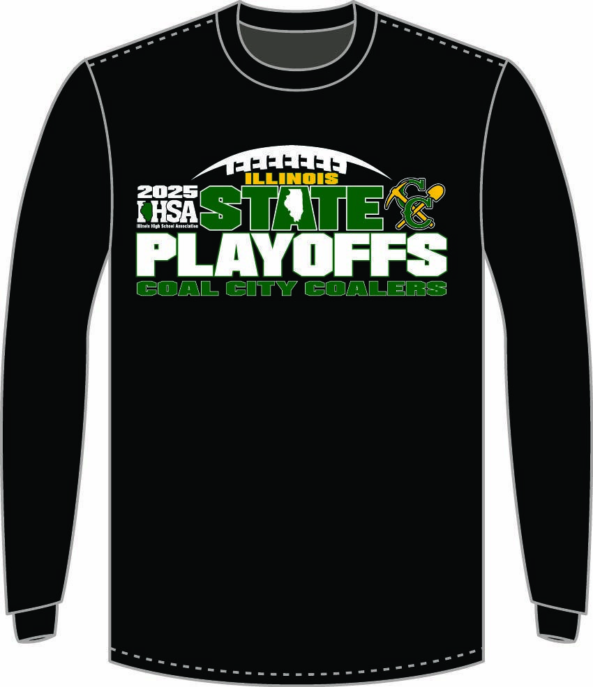2025 Coalers Football Playoff shirts are now on sale. Orders are due by Tuesday, Oct. 21 at 12 p.m. [noon]. Orders will be available for pick-up at Coal City High School on Thursday, Oct. 30 from 1-4 p.m. in the high school administration office. All shirts include this year’s playoff logo on the front and the roster of players, coaches, and cheerleaders on back. Place your order HERE