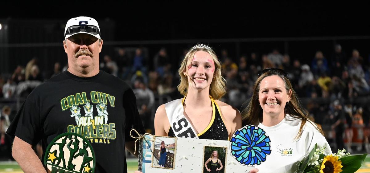 The five senior members of the Coalers Dance Team were recognized during Senior Night activities on Friday, Oct. 18. Honored for their commitment and contributions to the newly revived program were—Abby Kodat, Isabella Byers, Aubrey Grunwald, Tyson Sample, and Gianna Savarino.