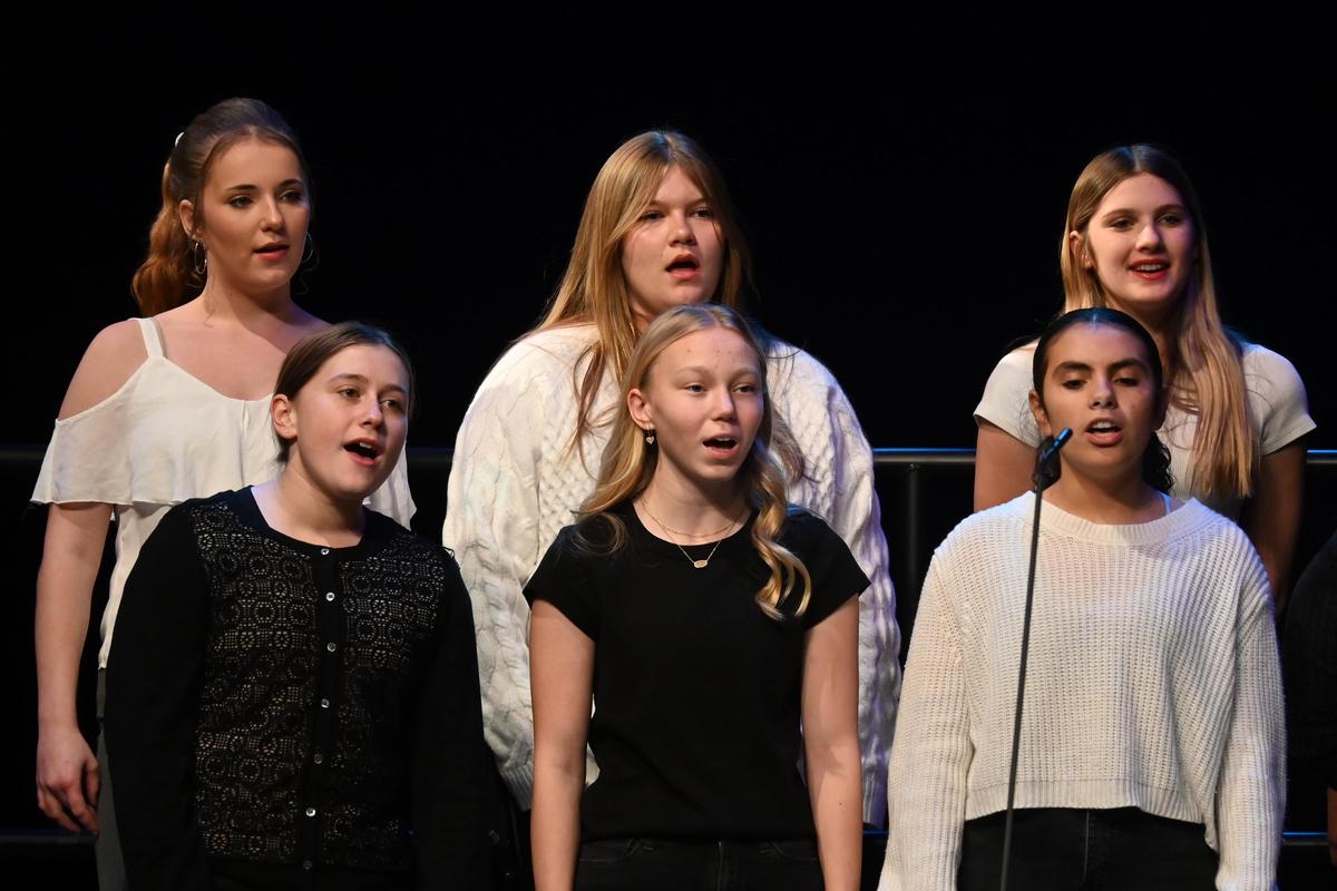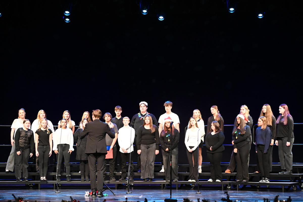 The Coaler Choir began with “One Horse Open Sleigh,” a unique take on the classic “Jingle Bells.” The group also presented “Snow on Snow” by Andy Beck with student Jaiden Leman on piano.
